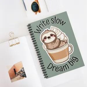 Cute Sloth Spiral Notebook - Write Slow Dream Big, Perfect for Journaling, School Notes, Gifts for Sloth Lovers, Self-Care, Relaxation