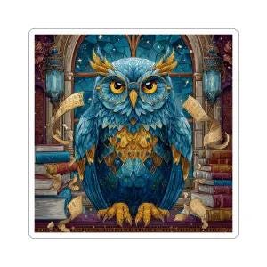 Artistic Owl Kiss-Cut Stickers, Cute Animal Laptop Decals, Nature Lover Gift, Book Lover Accessory, Aesthetic Wildlife Decor